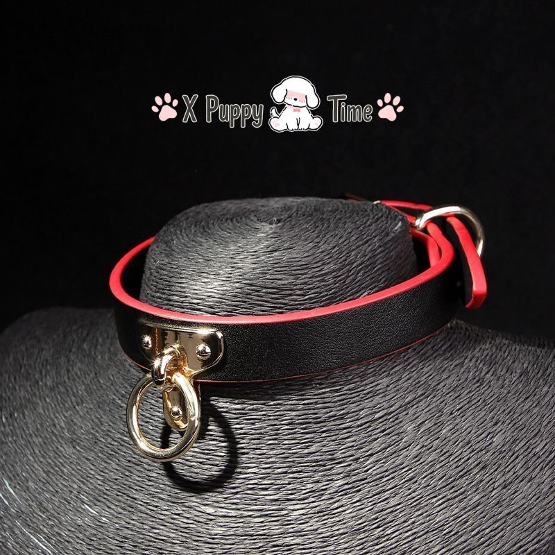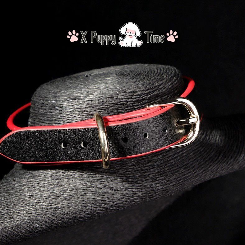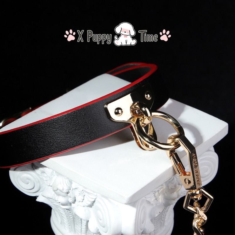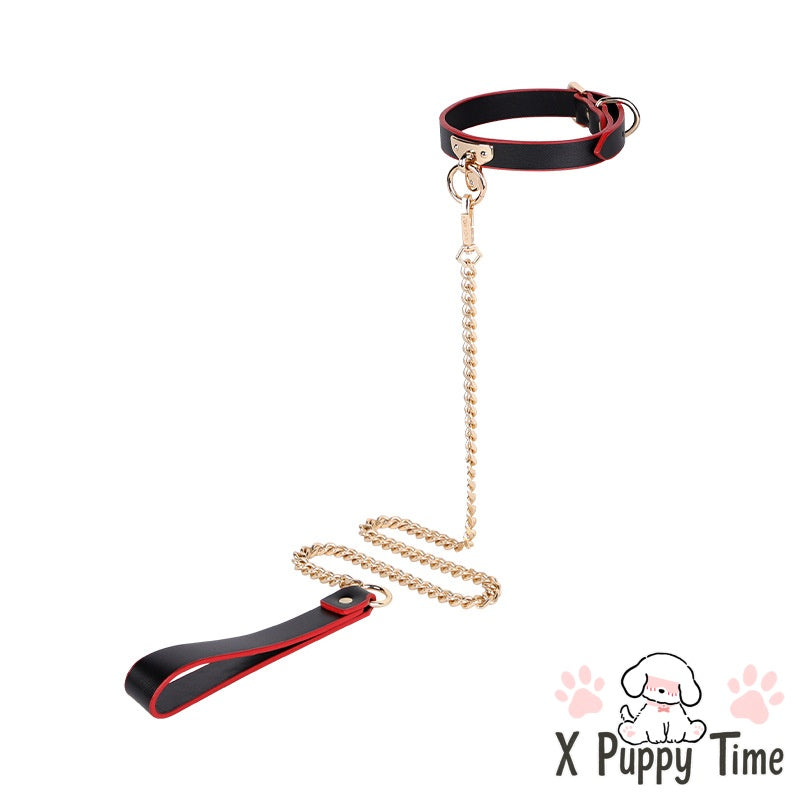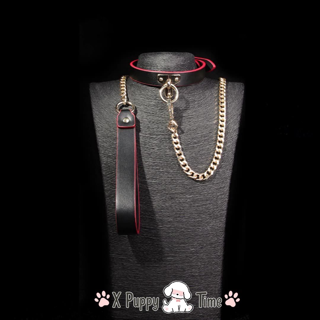 Black Leather Chain Collar with Red Edge