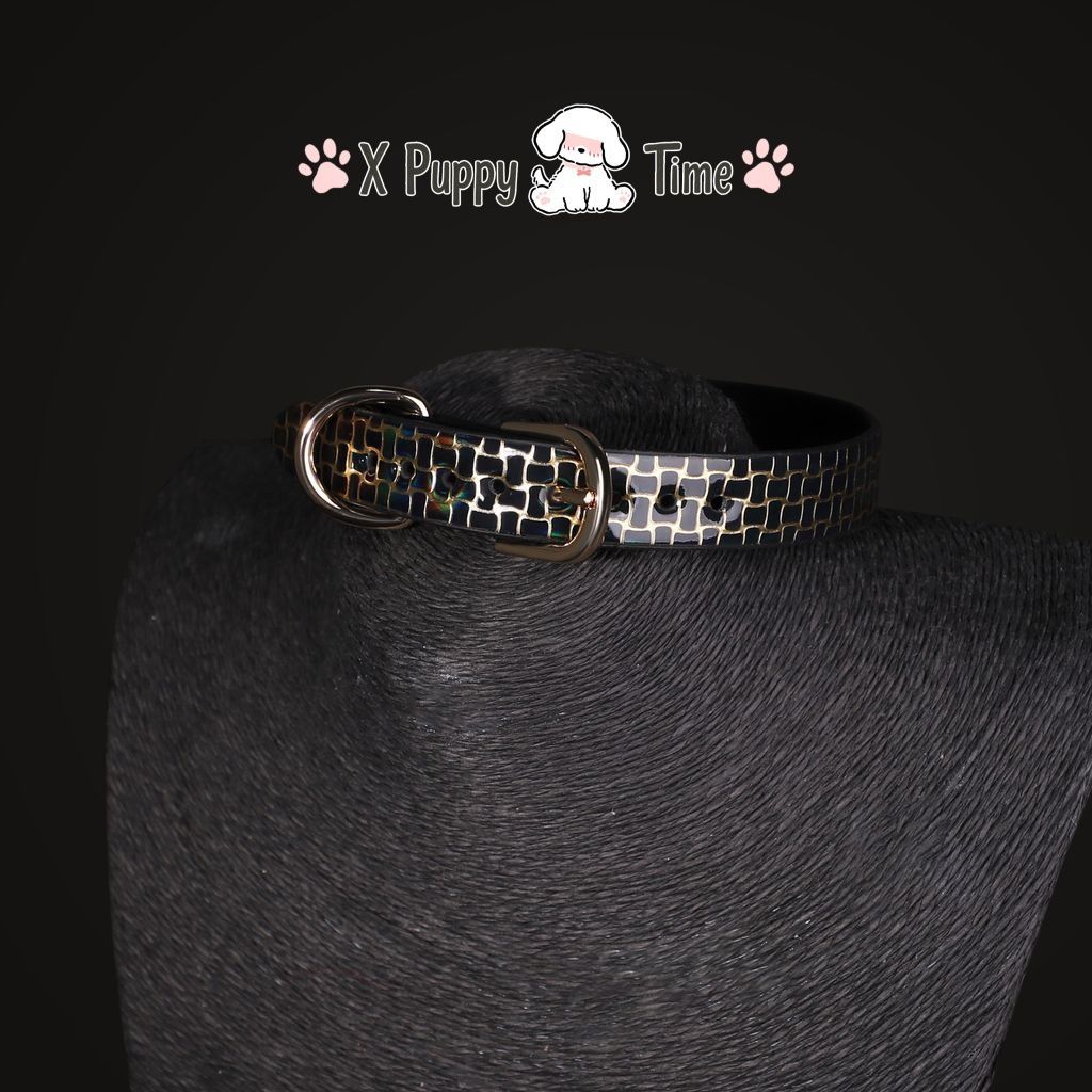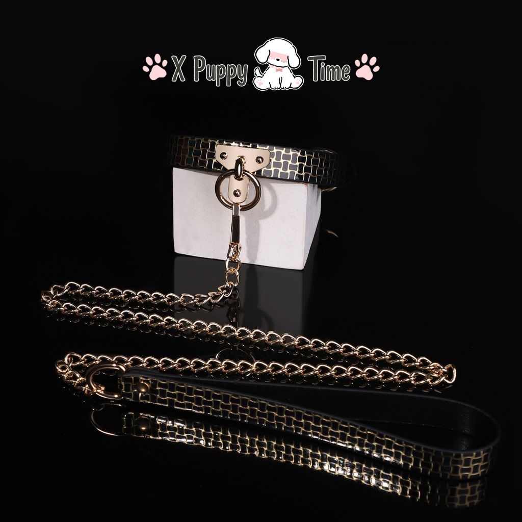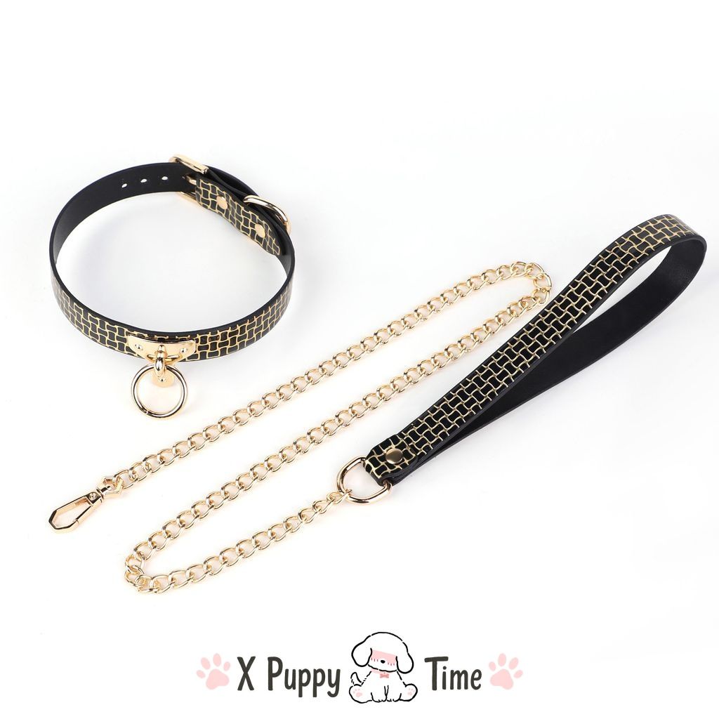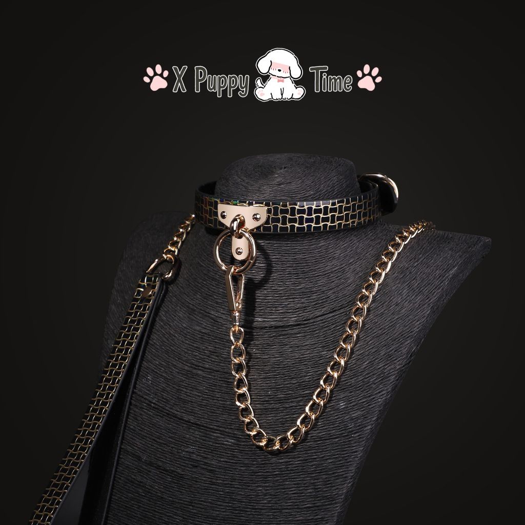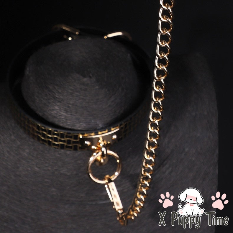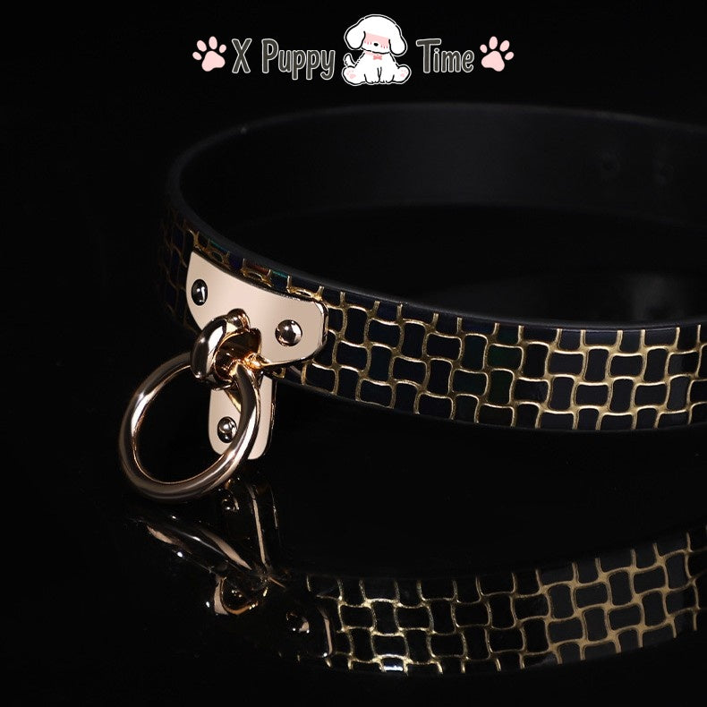 Black Mosaic Leather Chain Choker
