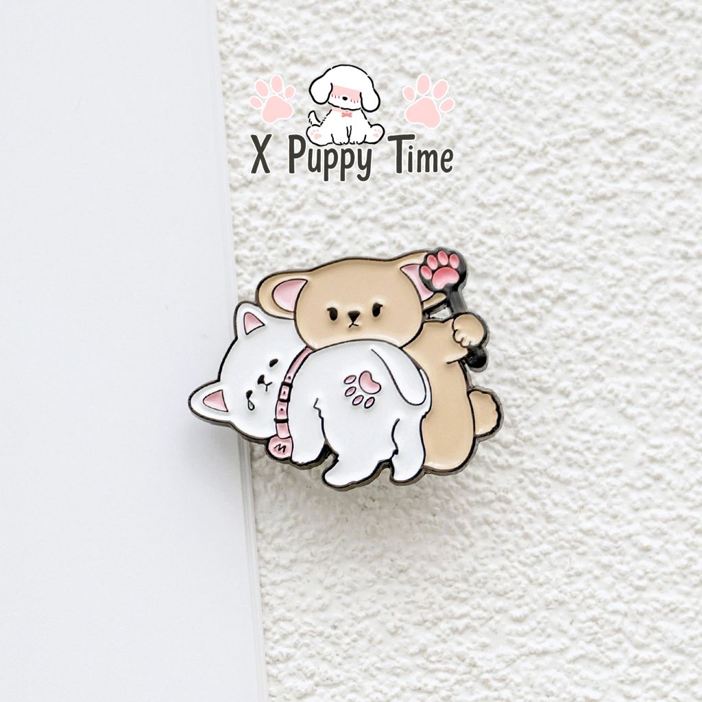Get-in-Trouble Kitty & Puppy Enamel Pin
