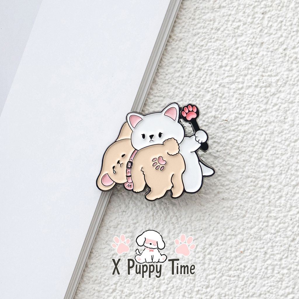 Get-in-Trouble Puppy & Kitty Enamel Pin
